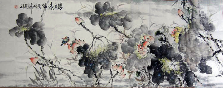 作品名称:张浩国画”荷塘情趣“ 作者:张浩 年份:当代 规格尺寸:180*70 材质:宣纸 作品编号:gh0167
