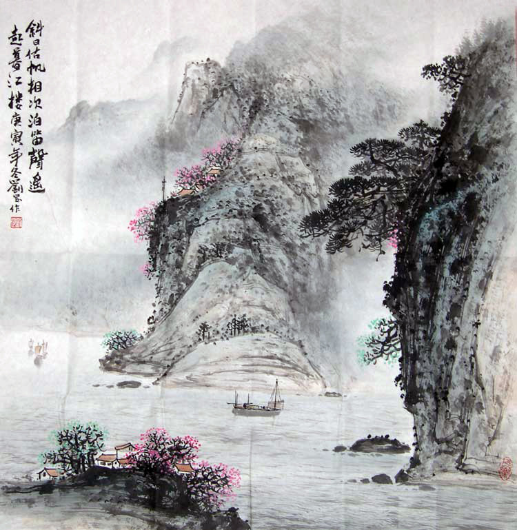 作品名称:刘刚国画”山水“ 作者:刘刚 年份:庚寅2010年 规格尺寸:68*68 材质:宣纸 作品编号:gh0153