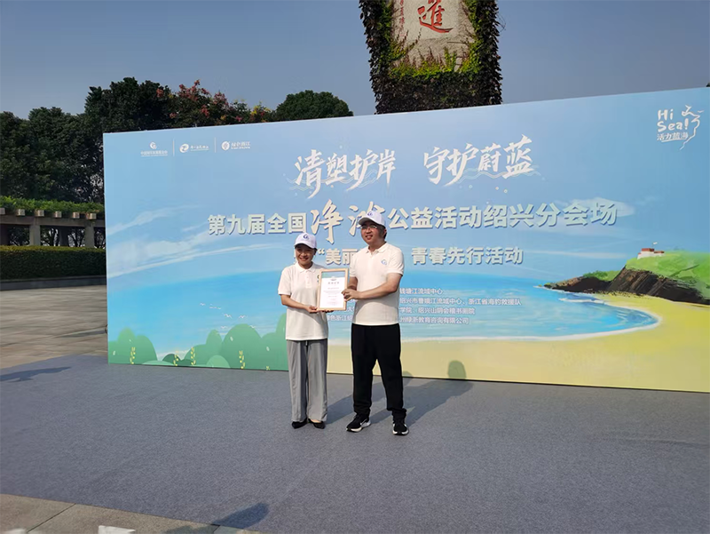 由浙江省绿色科技文化促进会理事、生态书画院院长施连元先生之邀,以山阴会稽书画院代表名义,有幸参与“清塑护岸,守护蔚蓝”第九届全国净滩公益活动绍兴分会场,暨“美丽岸滩”青春先行活动,感到确实很有意义。图4,5为杭州师范大学生命与环境科学学院党委副书记王倩颁发捐赠证书。
