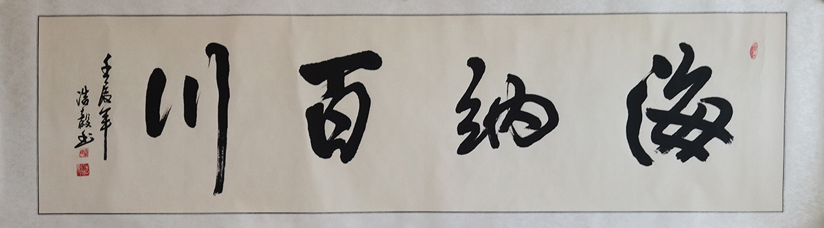 落款内容:海纳百川,壬辰年,浩毅书。