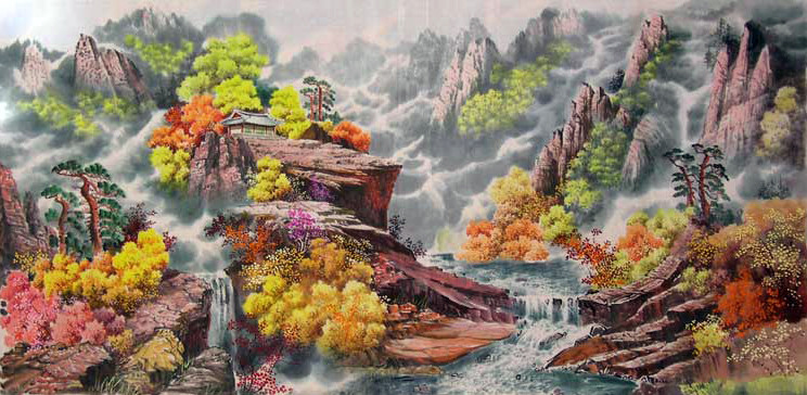 作品名称:朝鲜风景山水画 作者:朝鲜画家 年份:当代 规格尺寸:131*63 材质:宣纸 作品编号:wg0001