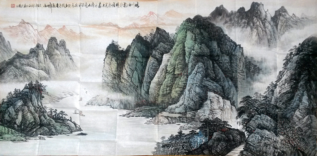 作品名称:尹诚仁国画”晴川曲抱沙……” 作者:尹诚仁 年份:已丑2009年 规格尺寸:136*68 材质:宣纸 作品编号:gh0218