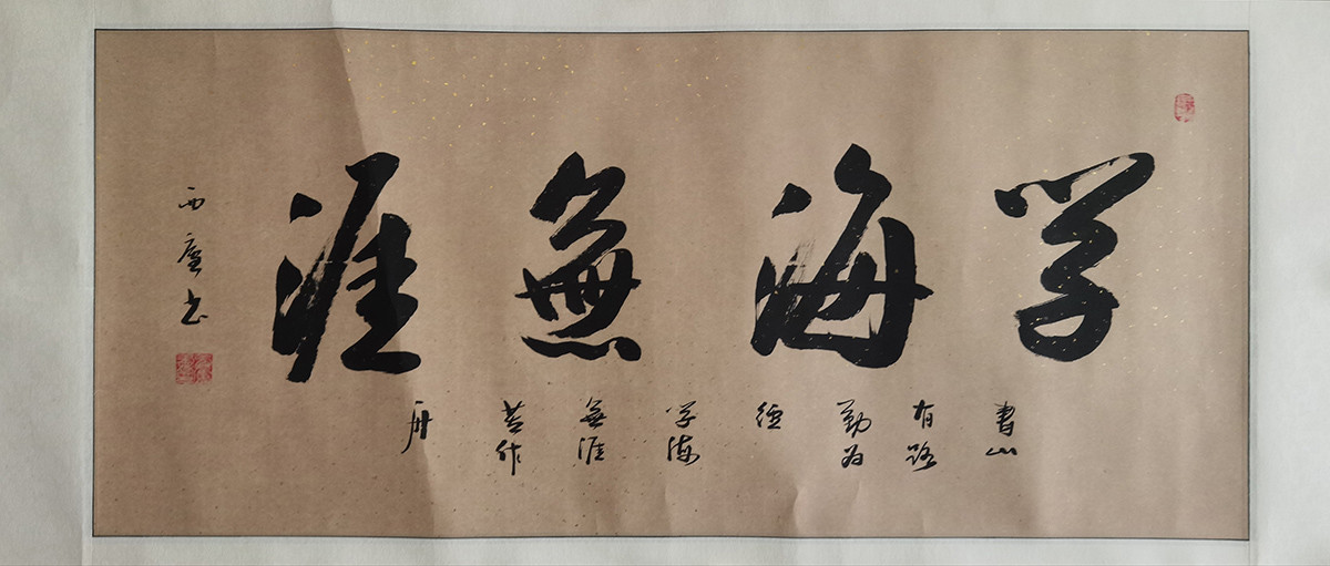 作者:西庐 年份:当代 落款内容:学海无涯,书山有路勤为径,学海无涯苦作舟。西庐书。 规格尺寸:字芯:96*50,已裱镜片:120*60 作品编号:B152