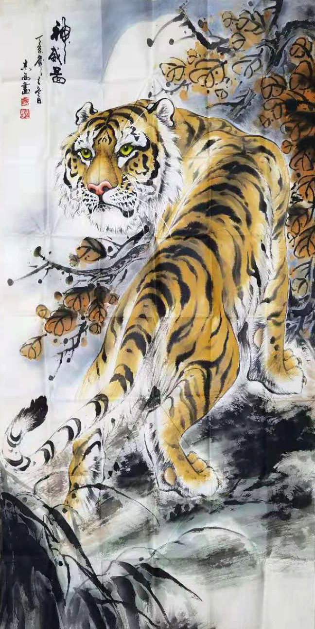 作品名称:严志高国画“神威图“ 作者:严志高 年份:当代 规格尺寸:133*67.5 材质:宣纸 作品编号:gh0235
