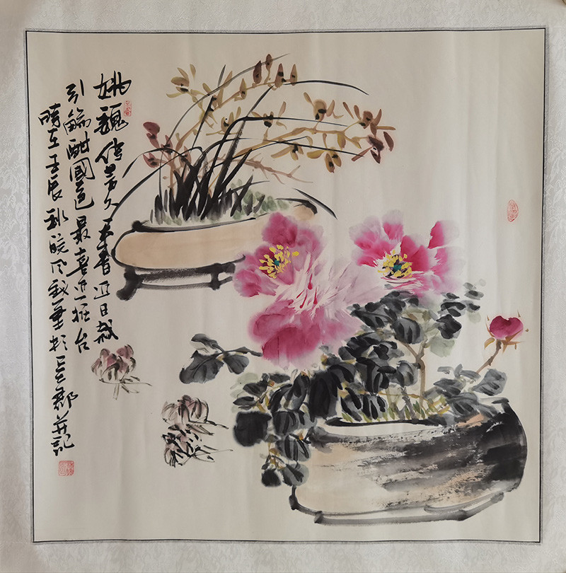 作者:林皖风 年份:当代 落款内容:姚魏传家久,天香近日栽,引觞酣国色,最喜近桩台。时在壬辰秋,皖风戏笔于吴郡并记。 规格尺寸:画芯:66.5*67,已裱镜片:80*80 作品编号:B213~gh0079