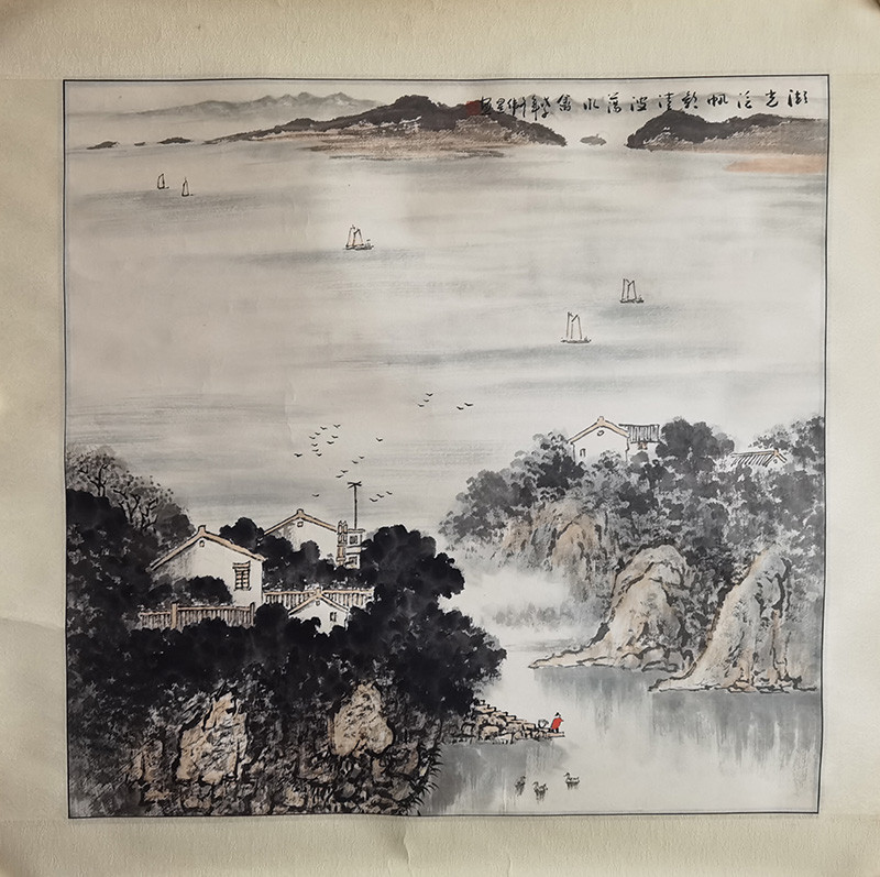 作者:伟星 年份:当代 落款内容:湖光泛帆影,清波荡水禽。戊子年冬,伟星画。 规格尺寸:画芯:64*64,已裱镜片:80*80 作品编号:B328~gh0113