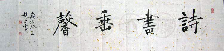 赵子富,别署慧兰堂主,1959年生,山东邹城市人。少年学丹青,弱冠染翰墨,而立攻诗文,先后的孙少白、李华亭、王学仲、陆俨少、章祖安诸先生指授,其书工于楷而长于草。作品入选全国第一、二届正书大展,全国第一届扇面书法大展,全国第六届中青年书法篆刻展,全国第一届行草大展(获妙品奖),中国书法百家精品展,全国第七届书法篆刻展,韩国第三回国际书法文人书大展等。其传略再入《中国当代书法家大辞典》等多部典籍。2000年其草书滕王阁序入编《当代中青年书法名家字帖》,出版《赵子富楷书送孟东野序》。现为中国书法家协会会员,山东省济宁市青年书法家协会副主席,邹城市书法家协会副主席、政协山东邹城市委员会常委、《中国书画报》特约创作员。