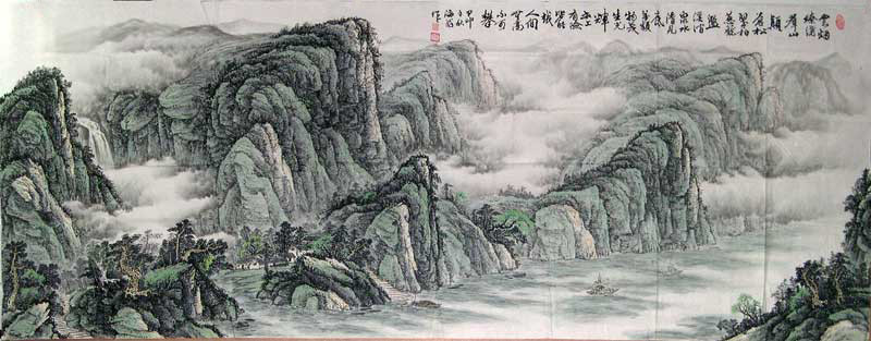 作品名称:海翁国画”云烟縓绕群山岭……“