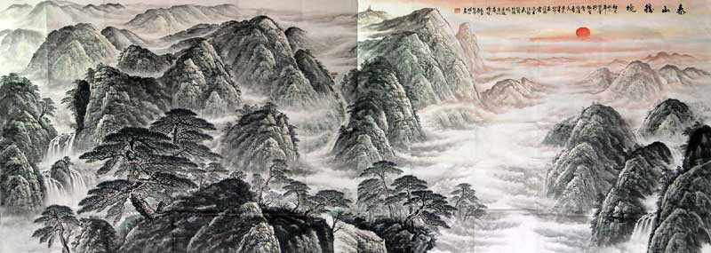 作品名称:王旭正国画”泰山胜景” 作者:王旭正 年份:当代 规格尺寸:368*145 材质:宣纸 作品编号:dx0044