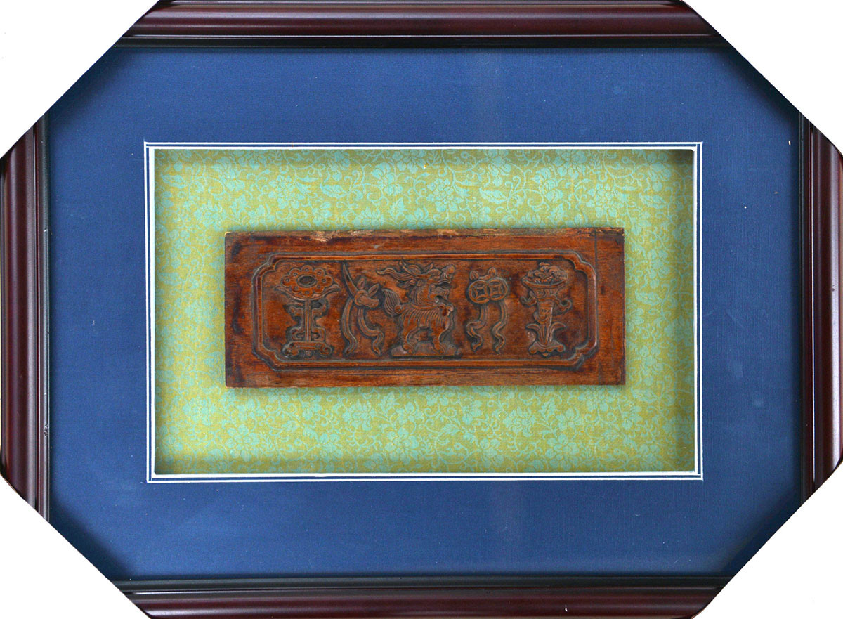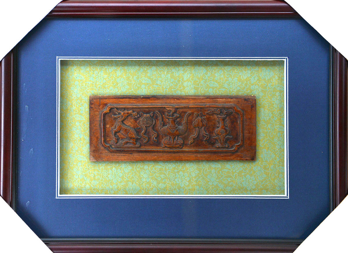 作品名称:明清木雕花板“吉祥“ 年份:明清 规格尺寸:46*34*2
