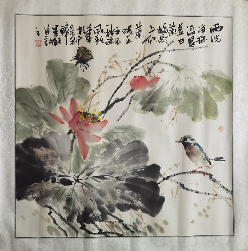 作者:林皖风 年份:当代 落款内容:雨洗净珠浮翠盖,日菡娇影红叶时,壬辰年秋皖风戏笔于醉墨轩并记之。 规格尺寸:画芯:67*67,已裱镜片:80*80 作品编号:B327~gh0112