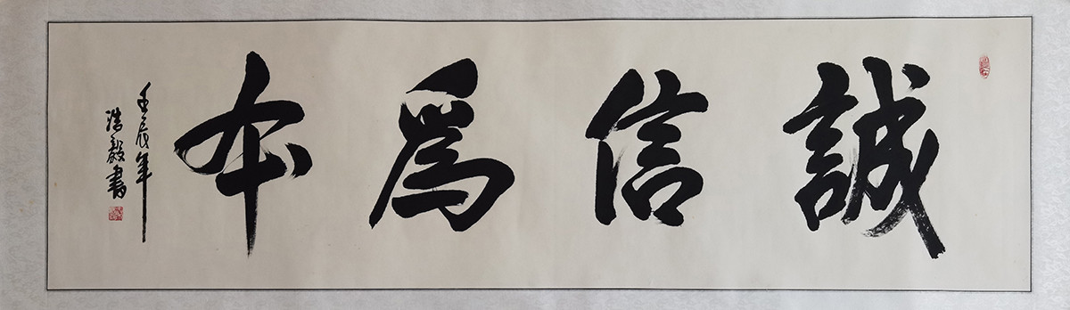 落款内容:诚信为本,壬辰年浩毅书。