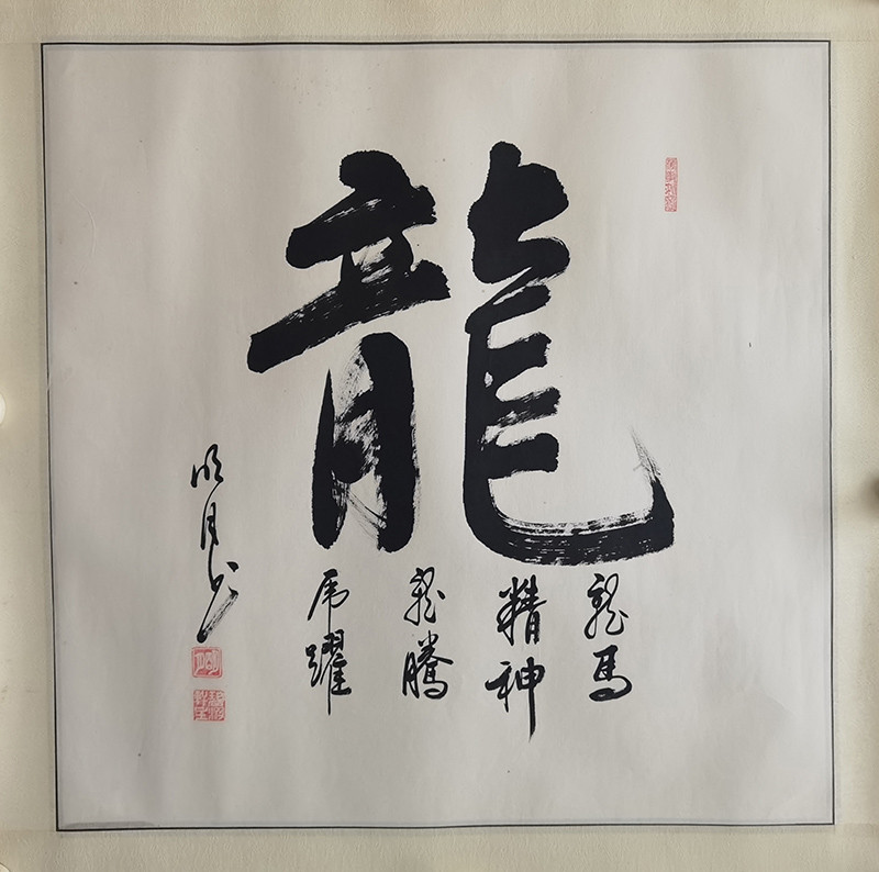 作者:明月 年份:当代 落款内容:龙,龙马精神,龙腾虎躍。明月书。 规格尺寸:字芯:50*50,已裱镜片:60*60 作品编号:B253