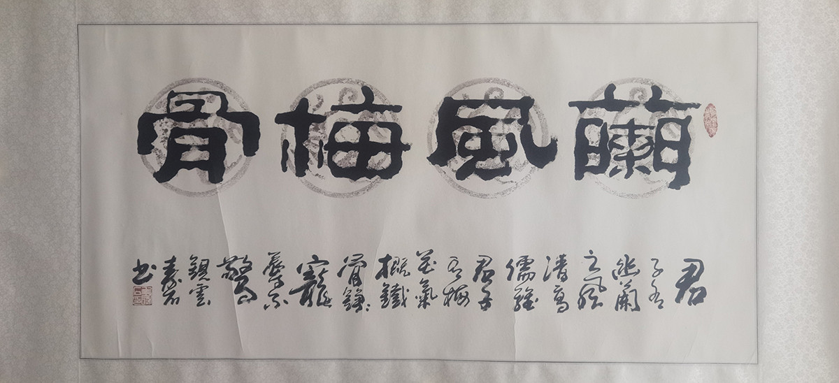 落款内容:兰风梅骨,君子如幽兰之风,清高儒雅。君子如梅花气概,铁骨铮铮,宠辱不惊。观云寿石书。