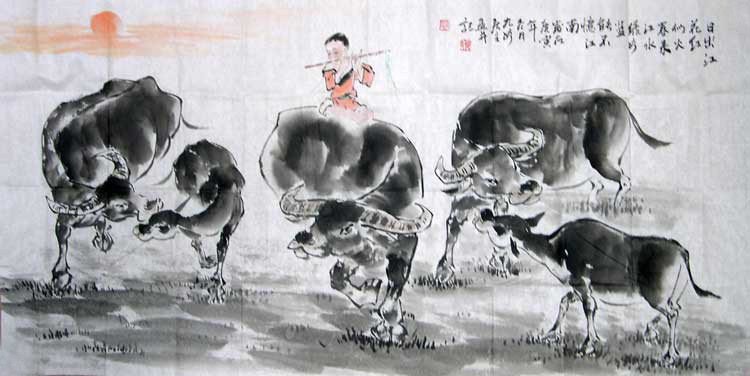 作品名称:何奕兴国画”五牛图”