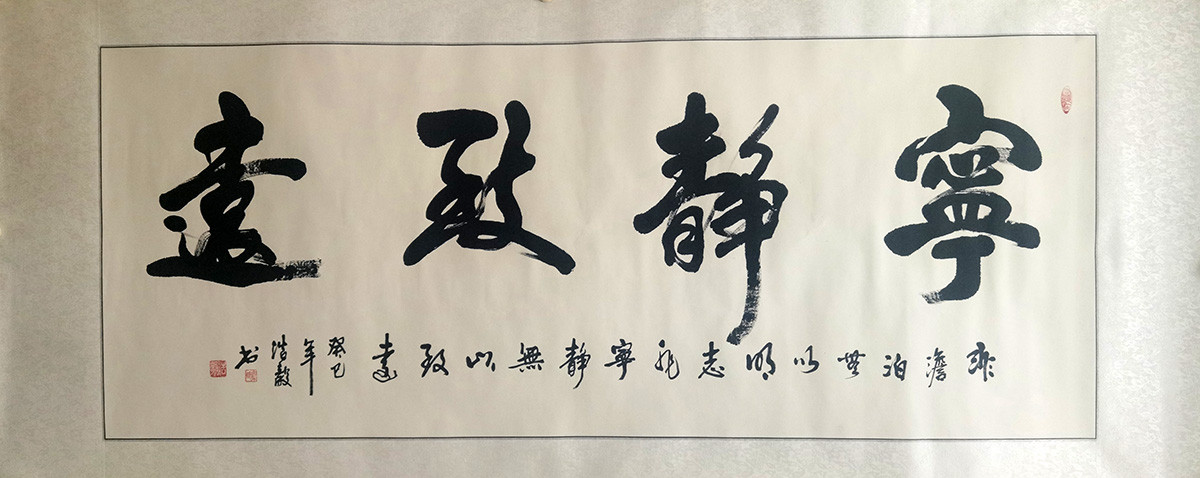 落款内容:宁静致远,非淡泊无以明志,非宁静无以致远。癸已年浩毅书。