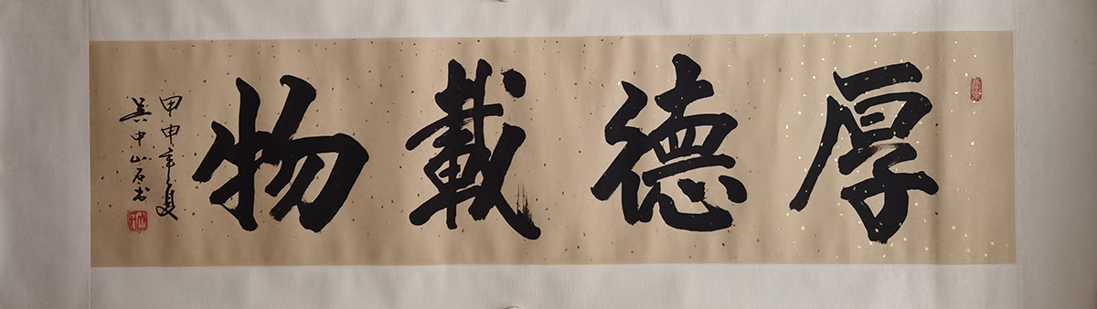 落款内容:厚德载物,甲申年夏,吴中山石书。