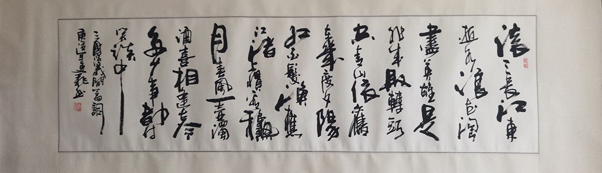 唐逸飞,桂林书法家协会会员。其书法以行草、隶书为擅长,是一位不可多得的实力派书法家。其书写风格特点:全羊毫长锋用笔,字体突出了继承与创新、柔中有刚、变化多姿、形态显神,以变求神的个性。楷书多取法颜真卿书圣,传统功力浑厚,结体端庄完美,师古而不泥;行草以孙过庭等历代大师为范,行草结合,刚柔兼容,飘逸清秀,气韵贯通,笔墨酣畅,自成风貌;隶书在研习汉隶的基础上,独创线条笔墨,苍劲古拙,典雅醇厚,自成一家,可谓一绝,耐人寻味。
