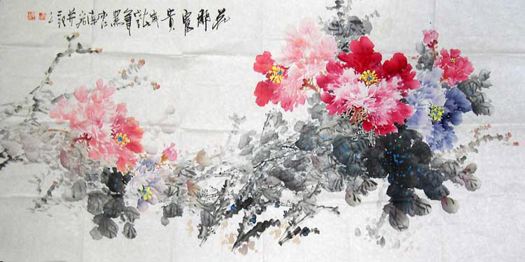 作品名称:彭亮国画”七彩牡丹”