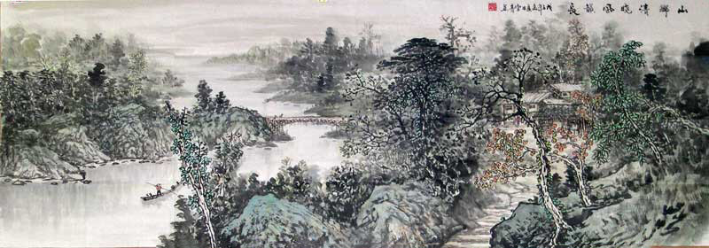 作品名称:雪青国画“山乡清晓风韵长“