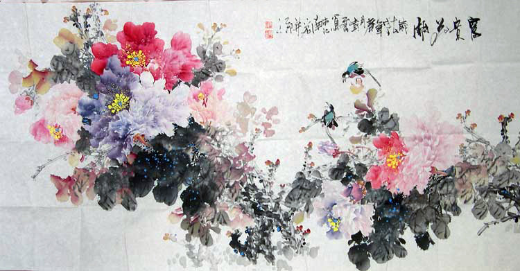作品名称:彭亮国画”七彩牡丹”