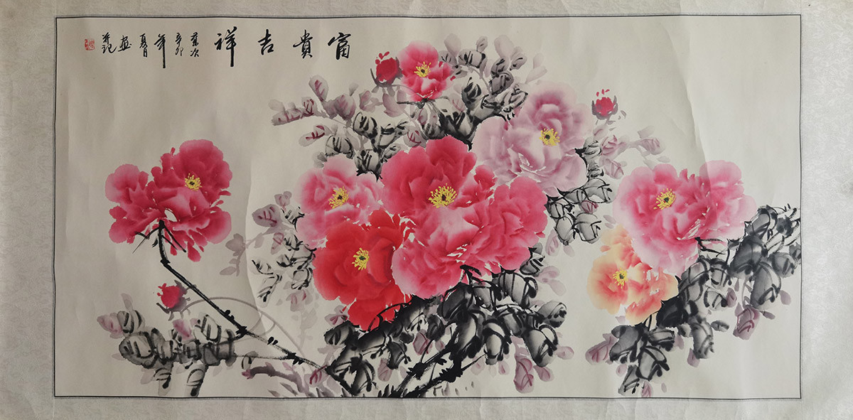 作者:周小意 年份:当代 落款内容:富贵吉祥,岁次辛卯年夏月画并记之。 规格尺寸:画芯:135*67,已裱镜片:160*79.5 作品编号:B89