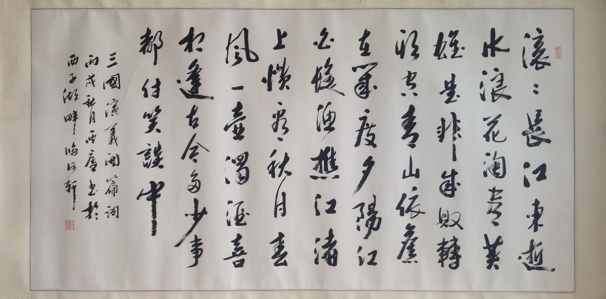 作者:西庐 年份:当代 落款内容:三国演义开篇词,丙戌秋月西庐书于西子湖畔鸣河轩。 规格尺寸:字芯:173*89,已裱镜片:199*99.5 作品编号:B406
