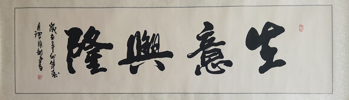 落款内容:生意兴隆,岁在辛卯年春月,唐明敏书。