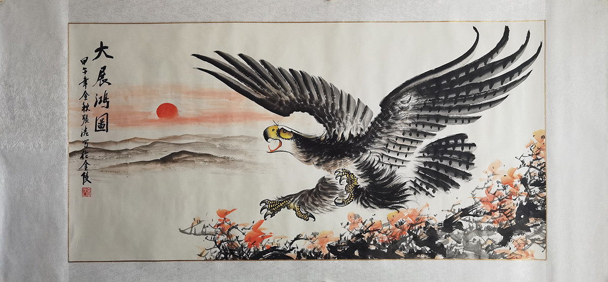 作者:张浩 年份:当代 落款内容:大展鸿图,甲午年金秋张浩写于金陵。 规格尺寸:画芯:132*67,已裱镜片:173*83 作品编号:B329~gh0114