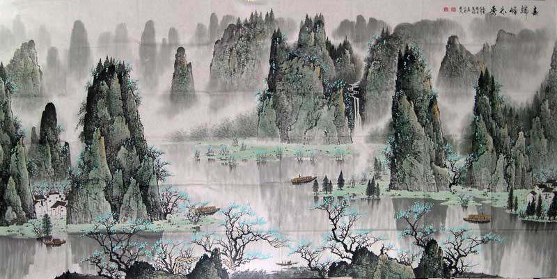 作品名称:苏立明国画”春归峰林秀” 作者:苏立明 年份:当代 规格尺寸:246*123 材质:宣纸 作品编号:dx0025