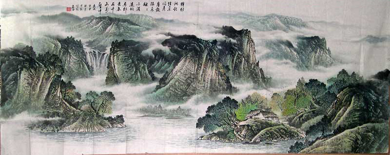 海翁先生擅长彩墨山水,其构思巧妙,情趣幽然,是画中有诗的典范,有相当书卷气。其作品落笔大胆,刻画细腻,山势磅礴,云雾横流,用色明快而不俗,以吞吐万象的景观来表现其丰富的感情世界。他用墨凝重深厚,行笔流畅自如,粗中有细,既有传统技法的苍润严谨,又有西画的质感和新意,以中西合璧的技艺拓展自己的艺术语言,来表现大自然的神韵,很耐人寻味。其作品数十次在全国、国际性展览中获奖,并为一些国家领导人、美术馆、博物馆、纪念馆收藏。近年来多次在成都、北京、广州、香港,以及台湾、日本、马来西亚展出,《成都晚报》、《四川日报》、《中国美术》、《收藏家》、《四川电视台》、《海峡之声》等数十家新闻单位曾对其进行专题介绍。其作品和传略入编《中国书画选》、《当代世界名人录》、《世界华人艺术博览大典》等数十部画册辞典,“中国文联书画总网”、“天府热线”等多家网站也进行了选录。