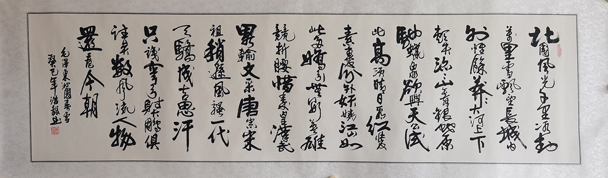 落款内容:毛泽东沁园春雪,癸已年浩毅书。