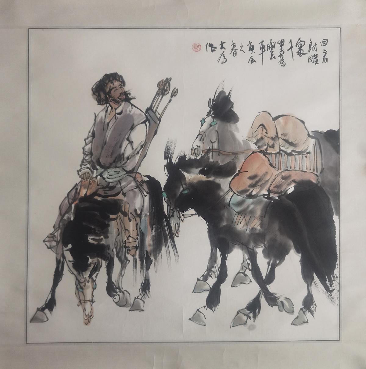 作者:刘大为(仿) 年份:当代 落款内容:回看射雕处,千里暮云平,庚辰之春大为作。 规格尺寸:画芯:67*67,已裱镜片:82.5*82.5 作品编号:B441~gh0149