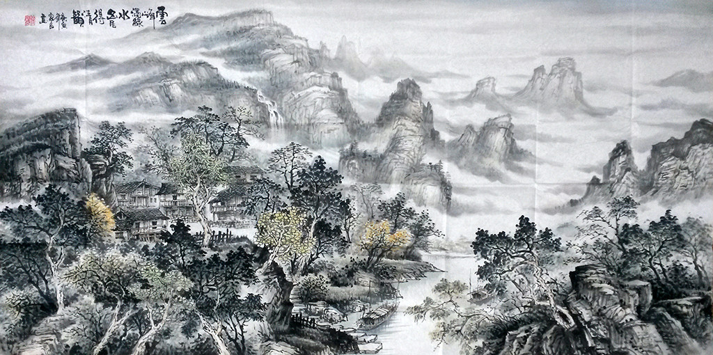 作品名称:徐家良国画”云峰泻绿水“