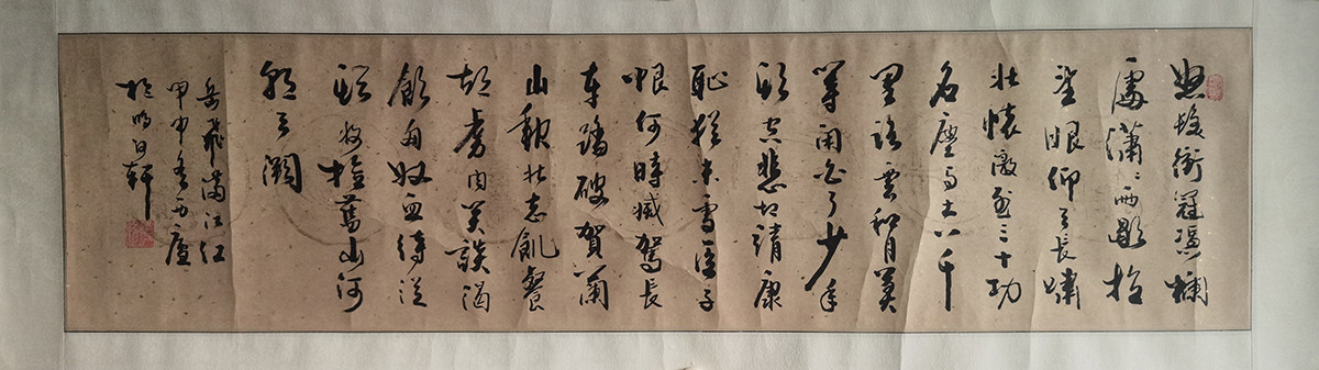 作者:西庐 年份:当代 落款内容:岳飞满江红,甲申年冬西庐于鸣河轩。 规格尺寸:字芯:130*32.5,已裱镜片:148*44.5 作品编号:B437
