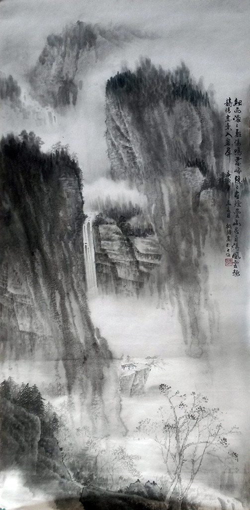 作品名称:姚强国画”细雨瀑鸣……“ 作者:姚强 年份:庚寅2010年 规格尺寸:136*68 材质:宣纸 作品编号:gh0221