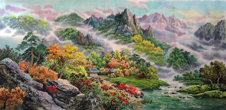 作品名称:朝鲜风景山水画 作者:朝鲜画家 年份:当代 规格尺寸:131*63 材质:宣纸 作品编号:wg0003