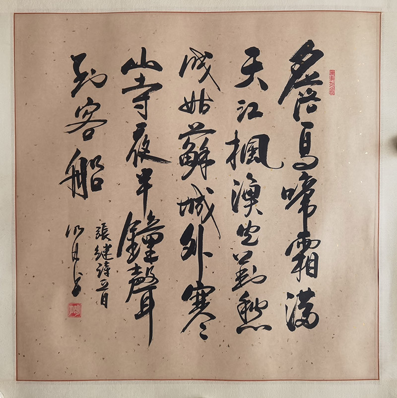 作者:明月 年份:当代 落款内容:月落乌啼霜满天,江枫渔火对愁眠。姑苏城外寒山寺,夜半钟声到客船。张继诗一首,明月书。 规格尺寸:字芯:50*50,已裱镜片:60*60 作品编号:B262~sf0022