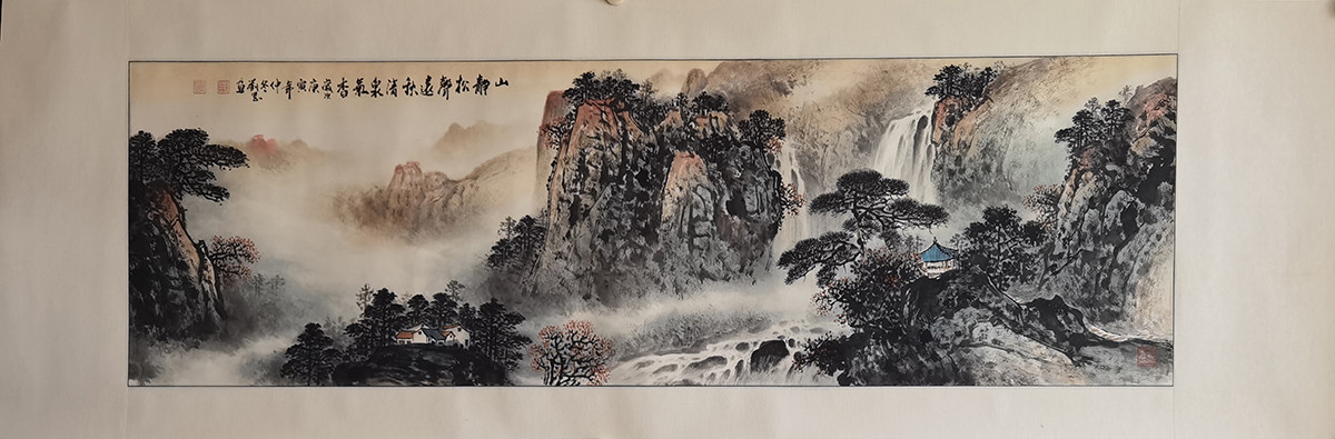 落款内容:山静松声远,秋清泉气香,岁次庚寅年仲冬,刘刚画。