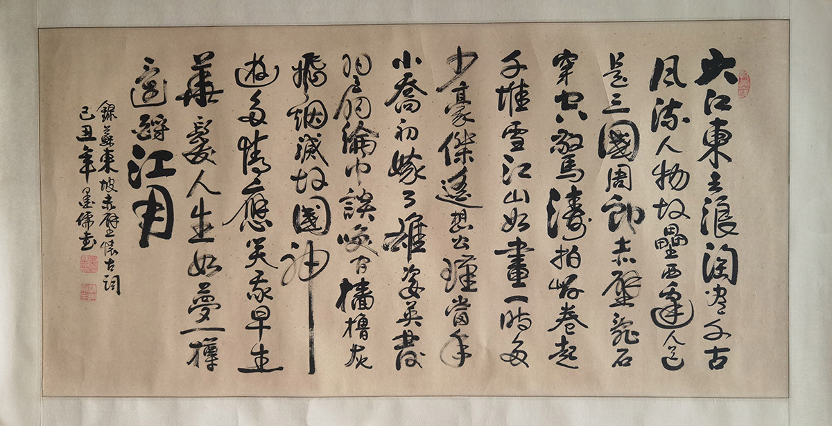 落款内容:录苏东坡赤壁怀古词,已丑年墨儒书。