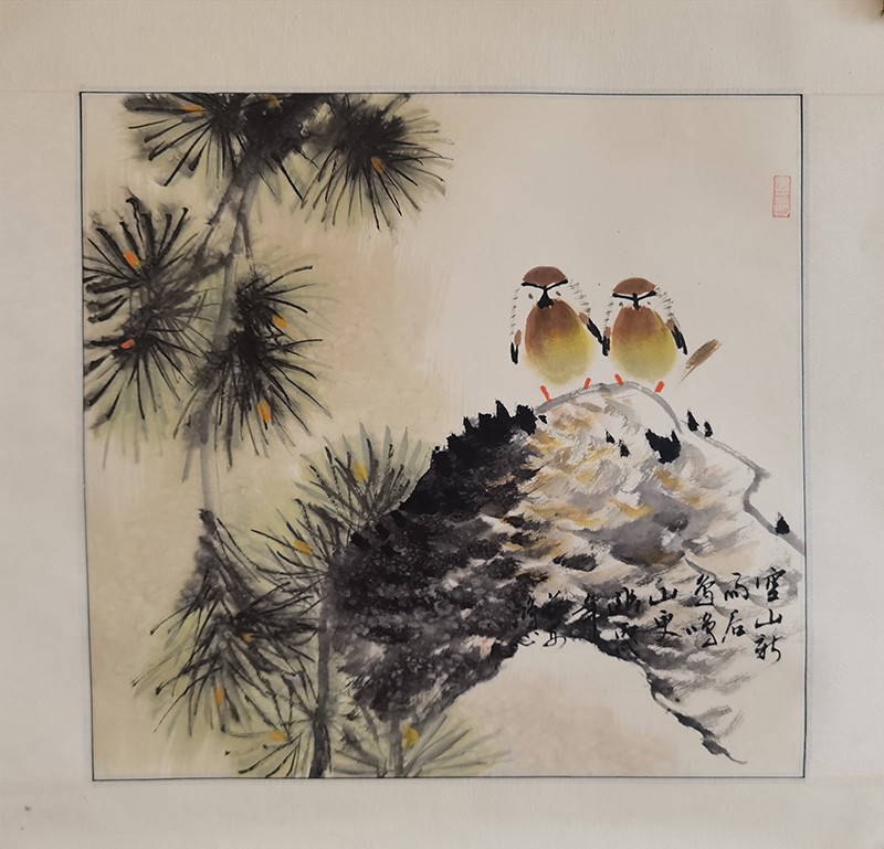 落款内容:空山新雨后,鸟鸣山更幽,丙戌年,长安鸿心。