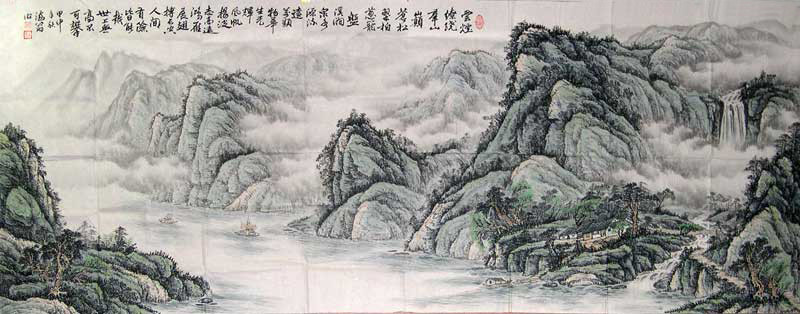 作品名称:海翁国画”云烟縓绕群山岭……“