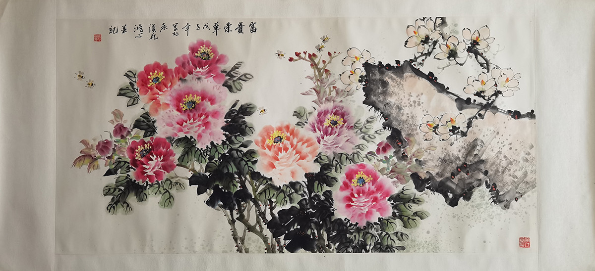 落款内容:富贵荣华,戊子年写于香溪苑鸿心并记之。