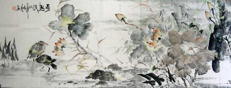 作品名称:张浩国画”荷塘情趣“ 作者:张浩 年份:当代 规格尺寸:180*70 材质:宣纸 作品编号:gh0131