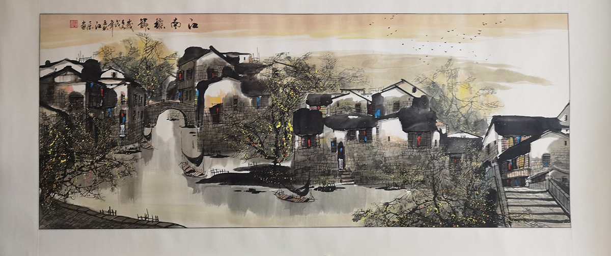 落款内容:江南秋韵,岁在丙戌年孟秋,江晨画。