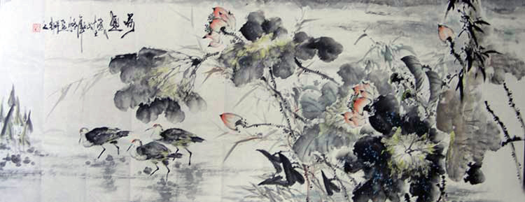 作品名称:张浩国画”荷塘情趣“ 作者:张浩 年份:当代 规格尺寸:180*70 材质:宣纸 作品编号:gh0168
